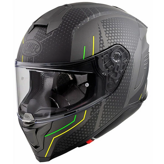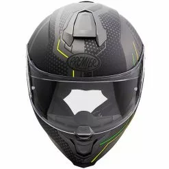 Hyper, grande nouveautĂ© 2020, est le haut de gamme racing complet proposĂ© par Premier. Pour ce modĂšle au design agressif et aux excellentes caractĂ©ristiques techniques, l’entreprise a mis en place toutes ses dĂ©cennies d’expĂ©rience dans le domaine de la course. Hyper est un casque de sport mais pas extrĂȘme. On pouvait l’utiliser en course, mais aussi sur la route grĂące Ă des intĂ©rieurs confortables et un systĂšme de ventilation adĂ©quat qui ne regrette pas la climatisation. Les formes d’Hyper sont complĂštement nouvelles et visent une aĂ©rodynamique maximale: les Ă©tudes en soufflerie ont apportĂ© de nombreuses innovations aux lignes traditionnelles, tout d’abord le becquet arriĂšre qui en plus de rendre le casque plus beau et aĂ©rodynamique, cache l’extracteur d’air du systĂšme de ventilation.