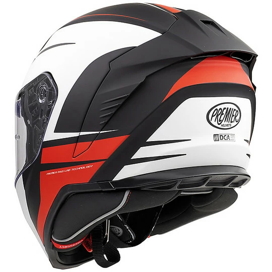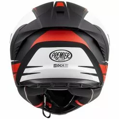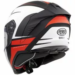 Hyper, grande nouveauté 2020, est le haut de gamme racing complet proposé par Premier. Pour ce modèle au design agressif et aux excellentes caractéristiques techniques, l’entreprise a mis en place toutes ses décennies d’expérience dans le domaine de la course. Hyper est un casque de sport mais pas extrême. On pouvait l’utiliser en course, mais aussi sur la route grâce à des intérieurs confortables et un système de ventilation adéquat qui ne regrette pas la climatisation. Les formes d’Hyper sont complètement nouvelles et visent une aérodynamique maximale: les études en soufflerie ont apporté de nombreuses innovations aux lignes traditionnelles, tout d’abord le becquet arrière qui en plus de rendre le casque plus beau et aérodynamique, cache l’extracteur d’air du système de ventilation.