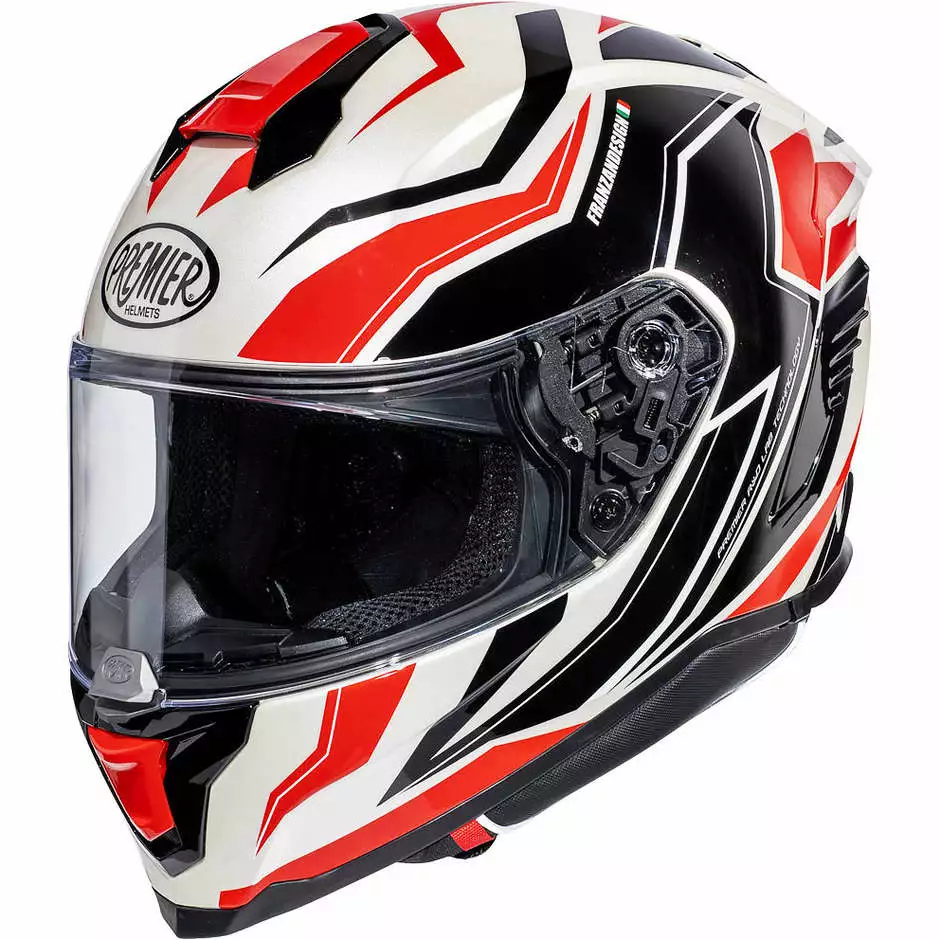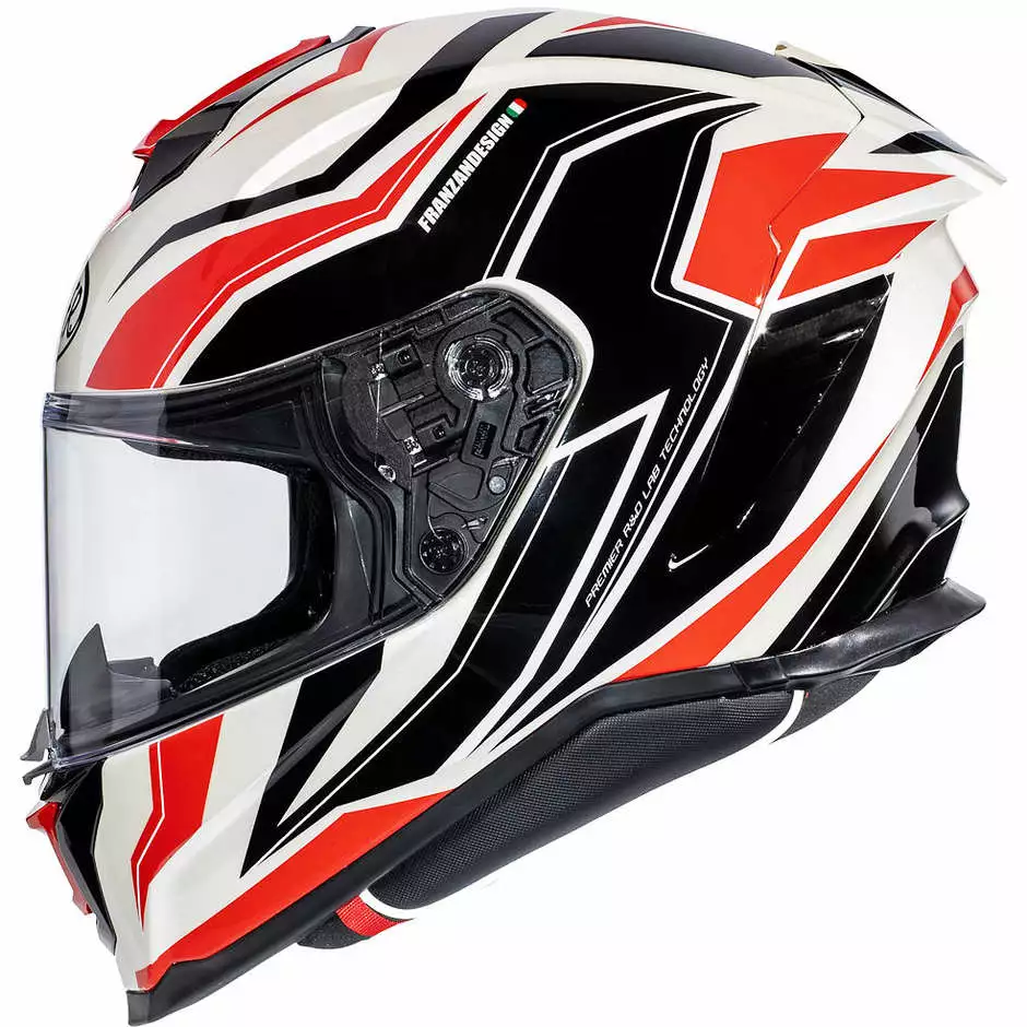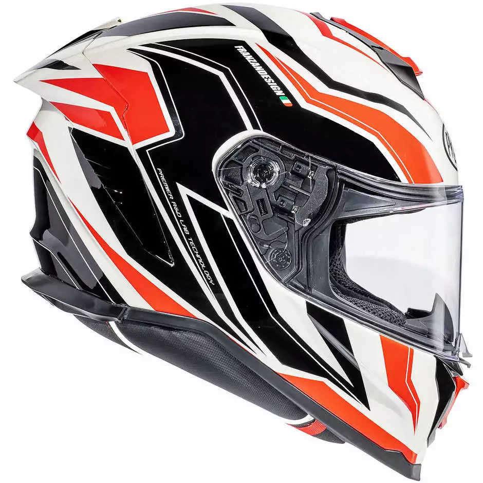 Hyper, grande nouveautĂ© 2020, est le haut de gamme racing complet proposĂ© par Premier. Pour ce modĂšle au design agressif et aux excellentes caractĂ©ristiques techniques, l’entreprise a mis en place toutes ses dĂ©cennies d’expĂ©rience dans le domaine de la course. Hyper est un casque de sport mais pas extrĂȘme. On pouvait l’utiliser en course, mais aussi sur la route grĂące Ă des intĂ©rieurs confortables et un systĂšme de ventilation adĂ©quat qui ne regrette pas la climatisation. Les formes d’Hyper sont complĂštement nouvelles et visent une aĂ©rodynamique maximale: les Ă©tudes en soufflerie ont apportĂ© de nombreuses innovations aux lignes traditionnelles, tout d’abord le becquet arriĂšre qui en plus de rendre le casque plus beau et aĂ©rodynamique, cache l’extracteur d’air du systĂšme de ventilation.