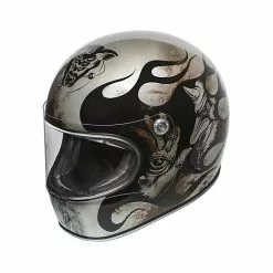 Premier est l’une des sociĂ©tĂ©s historiques du panorama des fabricants de casques de moto. Au cours de ses soixante ans d’histoire, il a Ă©crit certaines des pages les plus intenses de la course moto et le casque TROPHY nous projette dans cette pĂ©riode lĂ©gendaire et inoubliable. Un casque rĂ©tro ne pouvait donc pas manquer dans sa collection non seulement en graphisme, mais surtout dans la forme de la coque et de ses composants. TROPHY reproduit fidèlement le style et les formes des casques des annĂ©es 70, mais est conforme aux normes de sĂ©curitĂ© modernes.