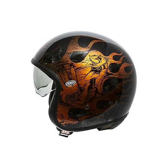 Casque de moto Jet Vintage en fibre Premier VINTAGE EVO BD Orange Chromed Glossy Black