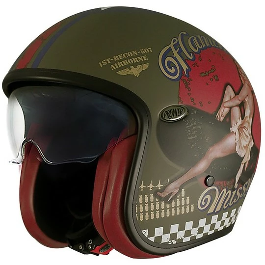 Casque de moto Jet Vintage en fibre Premier VINTAGE EVO Pin Up vert militaire BM Matt