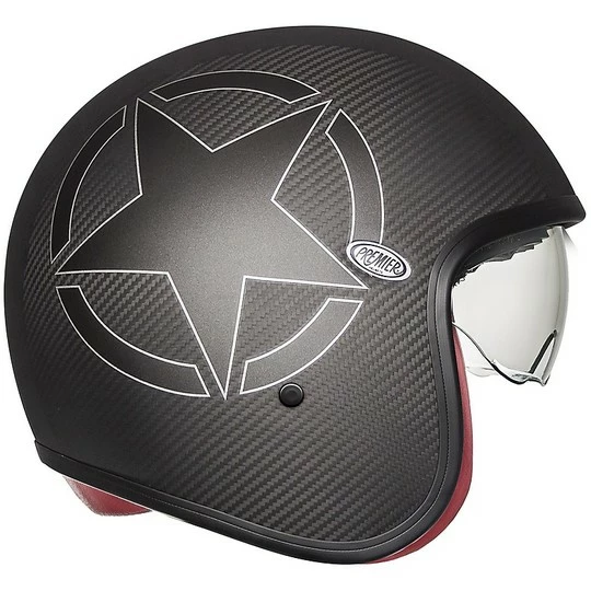 Casque de moto Premier Vintage Jet en carbone VINTAGE EVO Star Carbon BM Matt